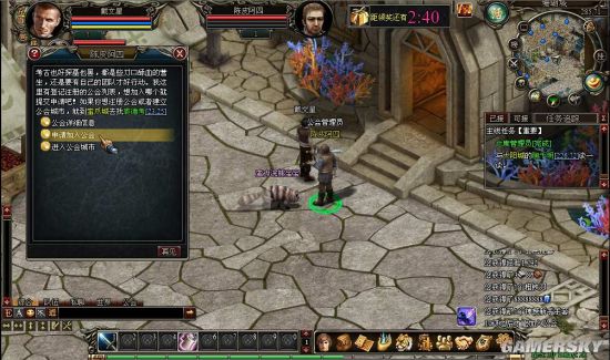 10级以上的玩家可以和太阳城的霍仙姑(286,71),珊瑚城的陈皮阿四(286,71),蛮爪城裘德考(23,25)对话,选择“申请加入公会”。