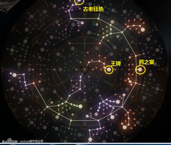 天赋图中,大点顺序为王牌-不朽祭品-痛苦折磨-滞时之殇-黎明虔锋-神秘折磨-古老狂热-救赎之锚-鸦之宴,其中古老狂热和救赎之锚可以换成其他天赋,根据自己装备不同配置自己的天赋。