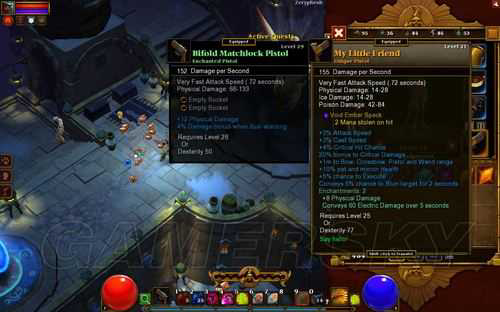 第一栏是装备的名字,如果有set Item说明是套装,金色装备通常是写Unique