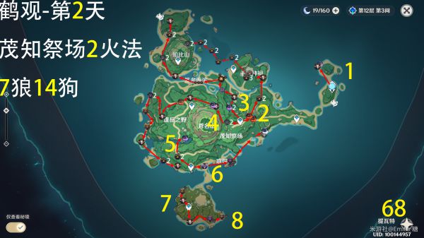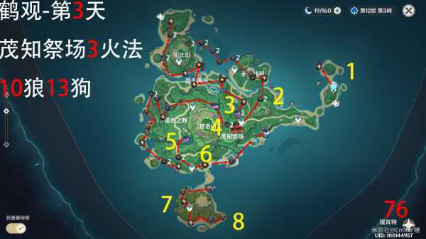 鹤观的怪物分布以3天为周期循环变化,参照物为茂知祭场传送点附近的火法师,火法师数量对应鹤观轮回的天数。怪物分布大同小异,且精英怪数量递增,第一天63,第二天68,第三天75,狼和狗的数量越来越多,猜测这与鹤观剧情中的轮回有关。