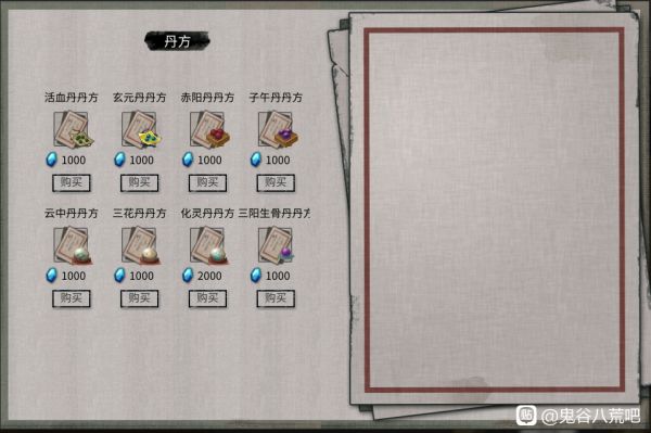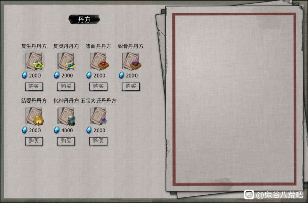 下面是目前三个主城能买到的所有丹方