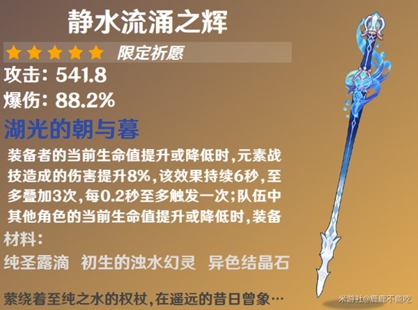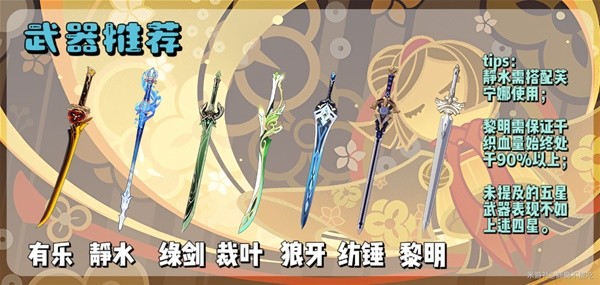 剩余的五星武器中,磐岩结绿与裁叶萃光也是可行,虽然技能特效的利用率不高,但面板属性足够优秀。