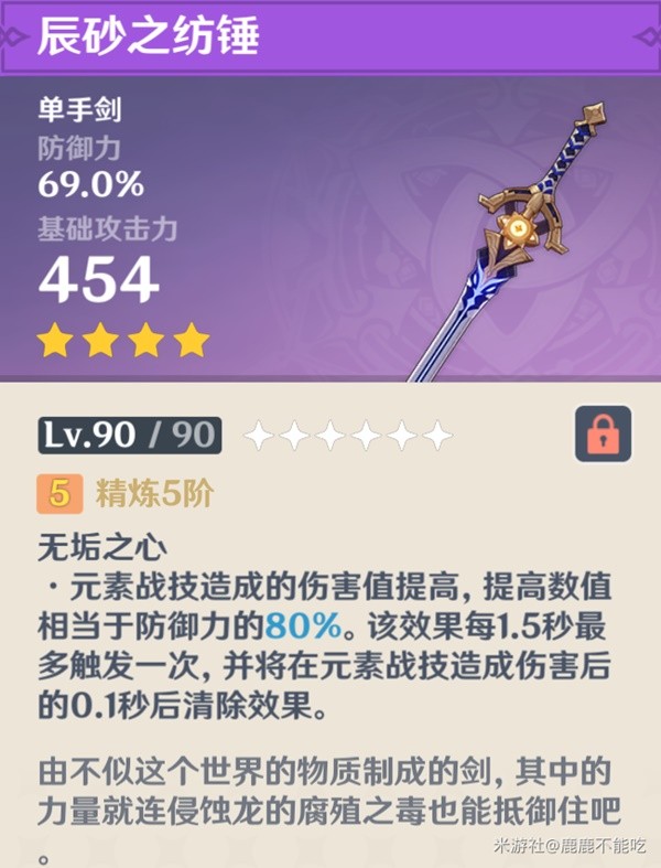 那么千织的五星武器首选自然是有乐御簾切,542/88.2%爆伤的面板以及技能特效中相当于常驻的20%防御力、48%战技增伤都十分契合千织的技能组,虽然还有32%的普攻加成基本只有六命千织才能用到,但即使忽视普攻增伤,其对于低命千织而言仍然是最优解。