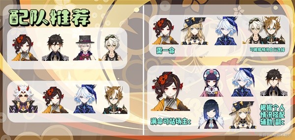 六命主c的情况下,可根据自身情况搭配辅助、副c,芙宁娜、钟离、娜维娅、五郎、班尼特、云堇、夜兰等等都是可行的选择。
