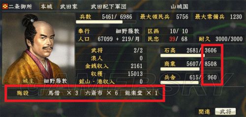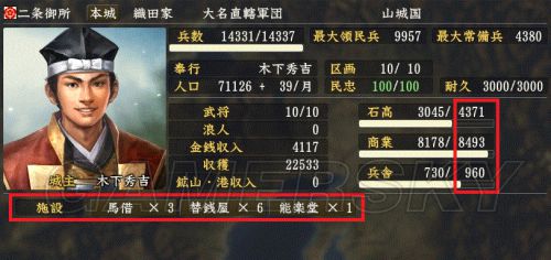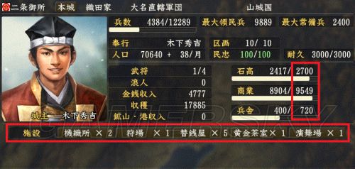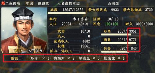 直接拿二条城比较,拡张完十区画比较石高商业上限不多说上图