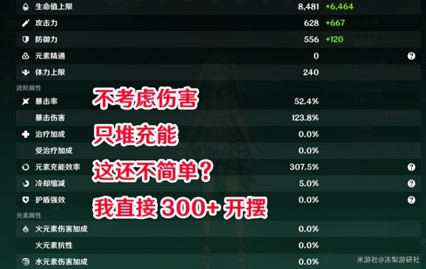 西风61.3%充能,暴击会额外产白球,进一步降低充能需求。天赋确实有基础攻击力转化额外伤害的效果。