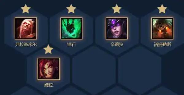 阵容特点,平滑。前期战斗力强。不像其他劫,极度仰赖于2星劫,不容易第八淘汰。