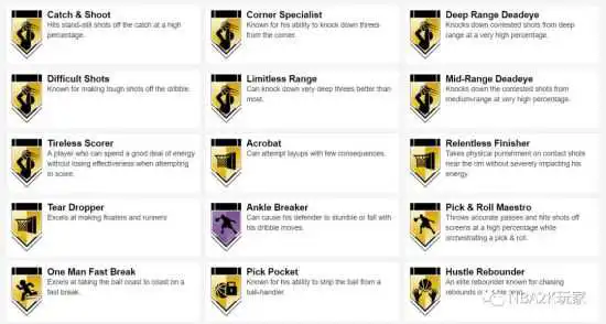 这张欧文的徽章为14+1共15枚,唯一的一枚名人堂徽章给到了紫色脚踝,投射徽章几乎全具备,持球防守和十美分肯定是要补上的,其余的大家可以看自己需要来补。