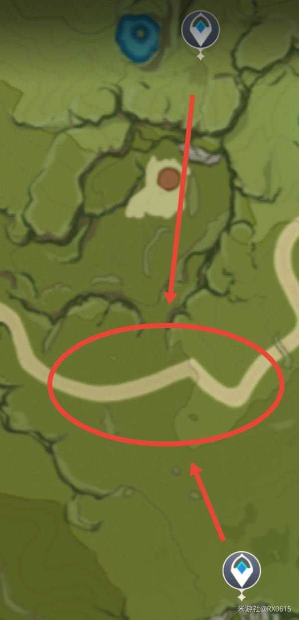 (由于该NPC会随意走动所以地点不定,但大致位置位于下图中画圈部分的道路附近):钩钩果、落落梅、慕风蘑菇(雷泽、女仆、芭芭拉突破材料)每日刷新