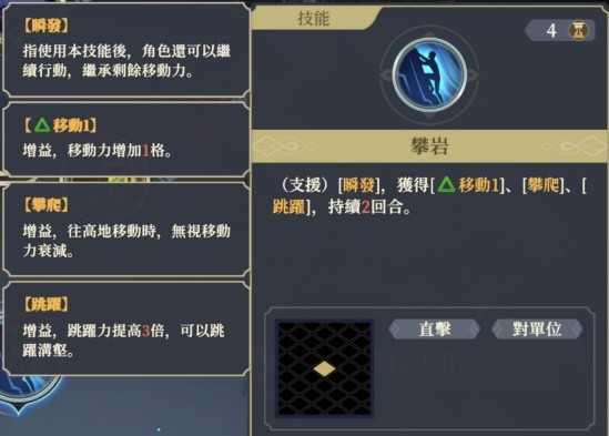 第一阶技能推荐选择攀岩,在《铃兰之剑》中,地形也是一个重要的战斗要素,攀岩能够让法卡尔获得移动距离的提升、攀爬和跳跃,让其在前期率先占领优势地形。