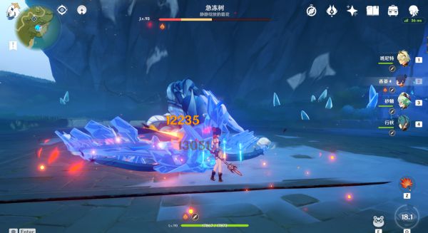 个人圣遗物原因爆伤较低,带的火伤杯。首先测试的是急冻树