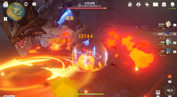 实战配队我选择的是国家队---班尼特、砂糖、香菱、行秋,主打蒸发效果。