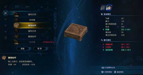 另外说一下,打完缙云Ctrl探索一下,在附近会找到三件同名同属性的衣服“覆雪轻甲”,属性是:94%防御、封印抗性+20%。