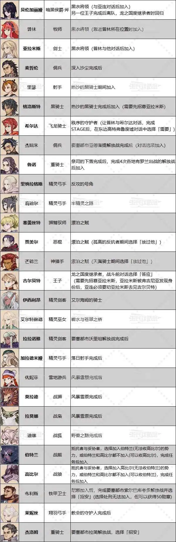 有些角色在第一次登场时没有招募的话,也有可能会在后续关卡加入,因此在对话中选择的选项是招募的关键。不过对话的不同选项可能会触发不同的事件,最好在触发之前提前存档,否则就需要开多周目了。
