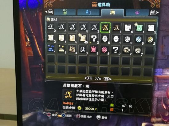 3.武器客制强化,武器客制强化需要一个对应的龙脉石,就是这个东西,至于掉率,呵呵,50以后一直刷古龙历战一直刷到77才见到3块英雄的,英雄是用来突破R8武器的…还有用来突破R7武器的,是猛者龙脉石,相对好掉些…至于这东西,还分武器,一个对应两种武器…R8武器可以强一次,R7两次,R6三次…