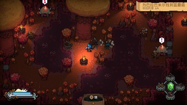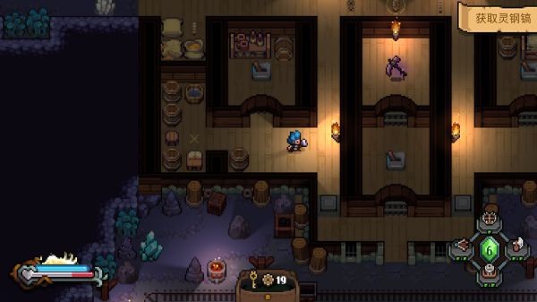 但大部分时间内,《战匠杜沃》别说转体720度,它甚至没有做出那个托马斯回旋——我们走各种没有意义的岔路,经过各种没有意义的场景,这些岔路和场景中,纯粹是几个木箱或者钥匙或者护甲(无法恢复的一管临时生命值)或者血瓶(仅对于一次不死通关的成就有意义),再加上你走了岔路就不得不打,但是其实没有多少正反馈作为激励的敌人→→当玩家反复在一个游戏中做着重复行为时,一般是为了养成体验,这一点相信前段时间玩过《沙石镇时光》或者正在玩《V rising》的朋友都会有同感,但这正是《战匠杜沃》下一个没有做好的方面,那就是——