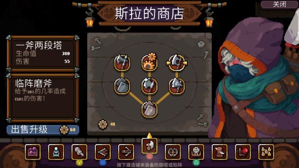 那么在《战匠杜沃》中的养成我们可以干嘛?那就是升级防御塔,每个防御塔有3个层次的技能树,升级需要20+40×3+60×3=320金币*,这个升级的金币是可以随时“退还”洗点,并且不会有损耗的,我还是非常喜欢这一点。但问题在于,在我们随身最多只能携带4个防御塔的情况下,最多320*4=1280金币已经是我们所需要的金币资源的全部,然而游戏流程中可获得的金币大概在3000以上...那么“超额”的金钱所能起到的唯一作用大概是“便利性”,也就是你不用反复退还防御塔的升级费用,可以把常用的塔都升满——但问题在于箭塔+高射炮+斧头+定身陷阱已经足够搞定一切,唯一需要切换的场景是关底把斧头换成阳光塔就完事了,也就是说这个“便利性”也是海市蜃楼的价值。事实上我在击杀第4个BOSS之后就已经携带4个满级防御塔,所以在游戏剩下的流程中我的战斗力完全没有得到提升。