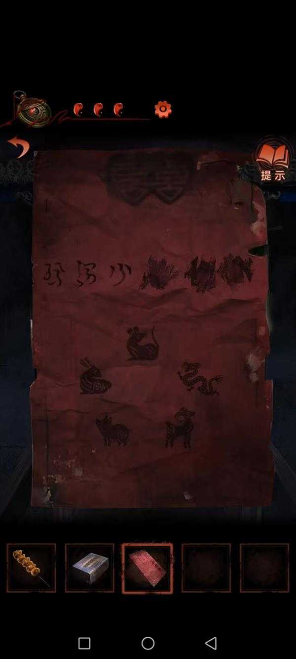 5、再回左边,在大花轿里面拿到绣花鞋,和一个请柬,结局请柬新郎叫郑枚曲(男主头上绿绿的),请柬背后有一堆线索,估计是打开花轿里面盒子的密码;