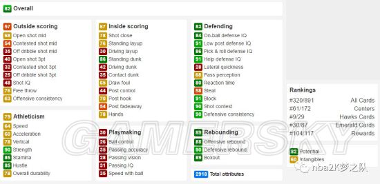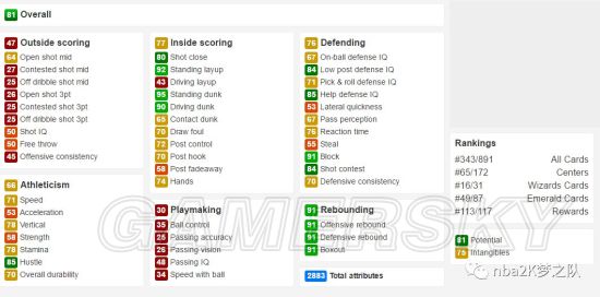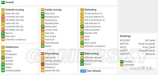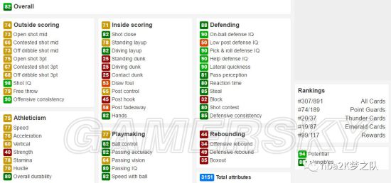 不过佩顿的缺点也很明显,那就是攻击能力较差,他的投篮没有一项突破80,而且还不能扣篮,控球也仅仅只有82,无法做出SPEEDBOOST,所以只能在场上承担组织和防守的任务。