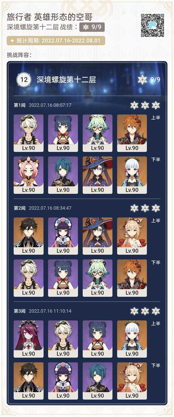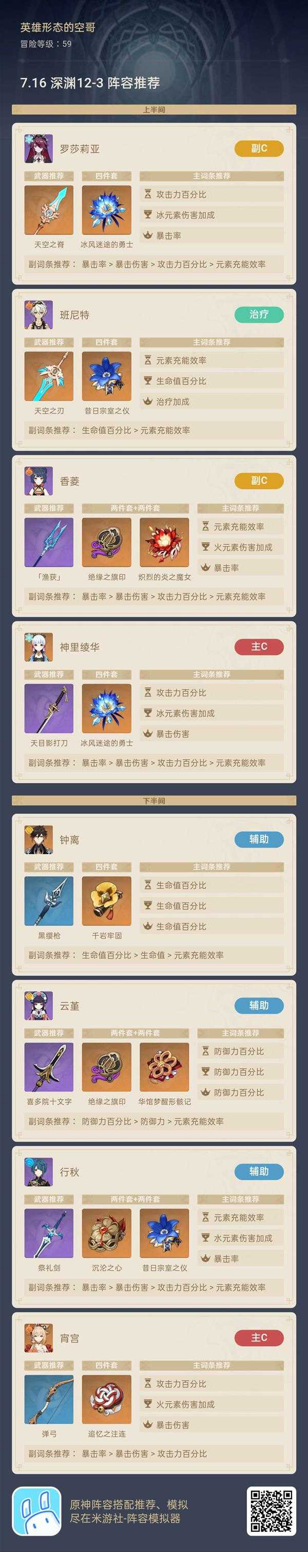 此套阵容适用于7月16日版本深渊 12-3 间,打12-1和12-2会比较慢。