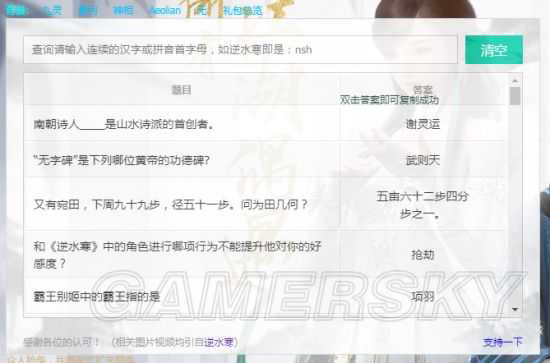《逆水寒》里面有很多活动可以得到奖励,科举答题是游戏中的一种活动玩法,答对问题越多,奖励越多。其中有很多题目难度非常大,如何才能快速解答科举问题呢?今天给大家带来“小心不”分享的《逆水寒》科举答题器网页版,希望大家喜欢。