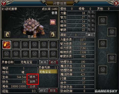 敏捷:增加敏捷可以提升灵兽的命中,闪避,致命攻击,致命防御。