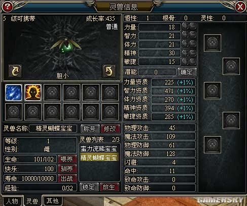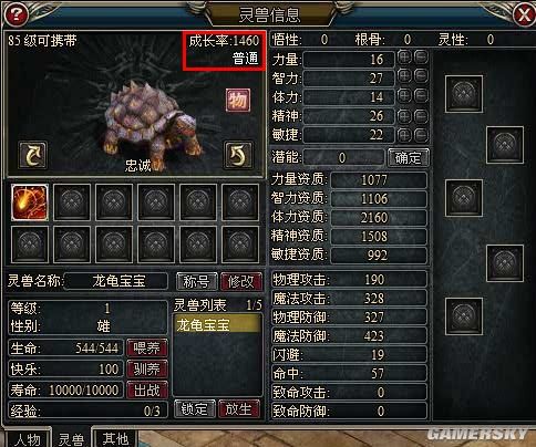 敏捷资质:敏捷资质越高,灵兽的命中,闪避,致命攻击,致命防御越高。