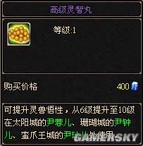 灵智丸可以在元宝商城中购买,灵智丸分为3种,分别对应不同悟性区间的灵兽。