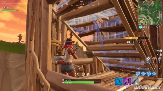 这样搭建完毕后,我们最好就从中间的某一处位置出现,因为敌人无法定位我们在封闭空间内的位置,这样我们编辑脚下的板,让其露出一个缺口,让我们的高度下降,在这个过程中速度越快,就越能把握战场时机,然后编辑竖板,让中间露出一个射击口,攻击对方便可。