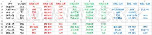 首先说下统计规则,卤煮单独开的一个档,用修改器改出所有武学,剑法等所有熟练度全部100.