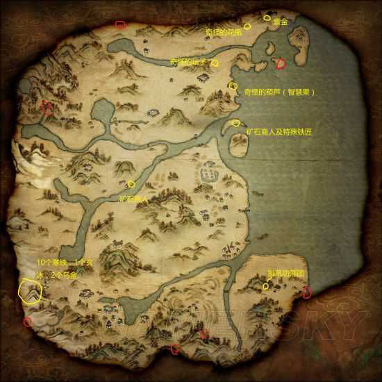 在山洞里孔金刚跳下水那里可以从右边按着SHIFT跳上去,那里有一个玄铁,因为我们是矿工天赋所以可以按F5保存以后用SL大法一直到挖到2个玄铁,然后出洞洞口右边有一个紫金,之后前往第一个龙珠点又有1个(2个)玄铁可以挖,然后ESC卡点脱离回拱石村,头上的石头桥有一个紫金,之后开始了环图之旅,在地图左下角的龙珠点北侧可以挖到5个(10个)寒铁和乌金,地图右上角找到罐子瓶子坛子什么的,最后转了一圈一共拿到了8个玄铁(4个龙珠箱子开出来),2个玄冰,3个金蚕丝,1个冰蚕丝,13个寒铁,6个紫金和一些七七八八的,一本枪法秘籍和一杆蓝色枪。开局就可以打造紫色武器,何需大侠开档,外伤是被豹子挠的。