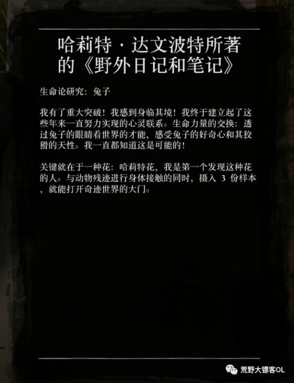 需要从背包中打开【生命论研究:兔子】文件,并且阅读一遍;