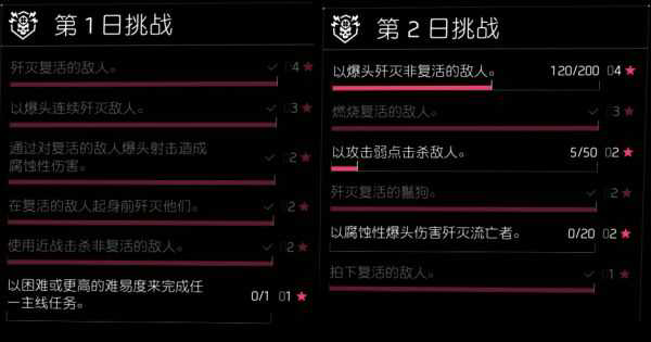 最新的全域事件,因为要有爆头、火伤、附带伤害等刁钻要求,可能大家都会比较烦恼究竟在什么地方完成最好?我就来分享一下。为了方便起见,我会将任务简化为【1-1】、【1-2】这样的缩写,前面数字代表第几天,后面数字代表第几个任务这样。