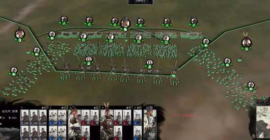 2将领各带3骑兵在两翼(开启自动拒绝单挑)。