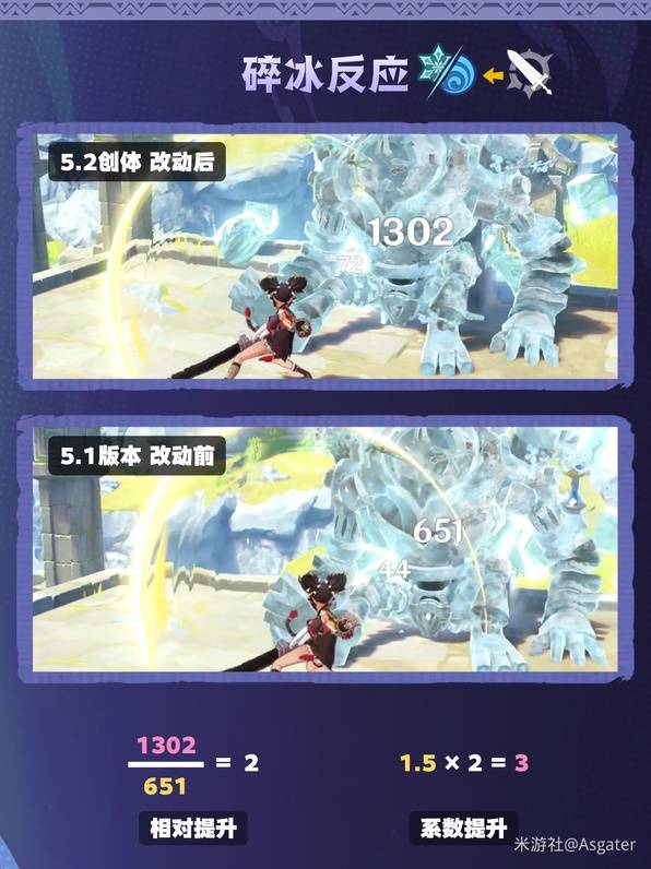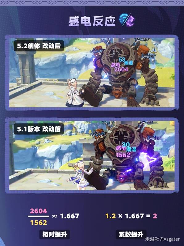 ◆只提升了超载(2→2.75)、感电(1.2→2)、超导(0.5→1.5)、碎冰(1.5→3)这4种元素反应的系数,其他反应和效果均未改动。