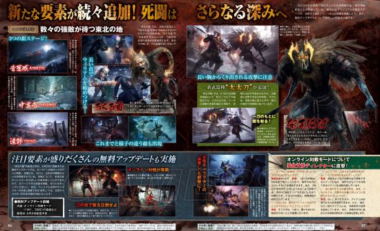 威廉初访奥州,那里有着众多未曾见过的妖怪们飞扬跋扈,包括飞头蛮、生剥鬼等。此外还将追加青叶城、中尊寺、远野这三个新舞台,以及新武器种“大太刀”,兼备广攻击范围与威力的武器,虽然出招慢,适合在与复数敌人和宽阔场地中战斗时使用。