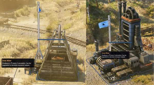 左边是普通钢材资源点 右边是升级后的大型钢材资源点
