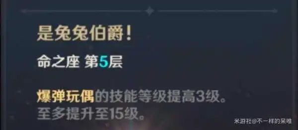 兔兔核弹流凭着高额的爆炸伤害以及元素反应能打出极高的伤害 需要高命坐而命坐获取难度极高