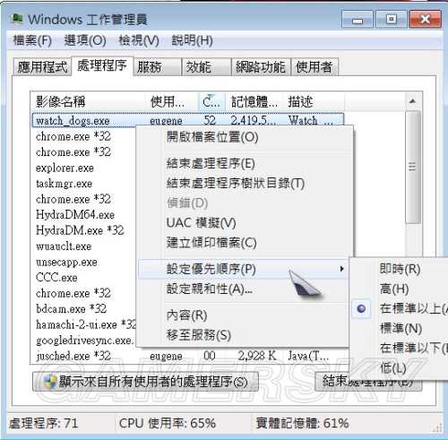 如此可以让电脑的资源优先来处理看门狗的处理程序不过如果配备差太多...我就不保证有效果了