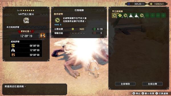 结果我会用的武器半个没出现,先用片手打了几场后一直GG就想者试看看大剑,意外地打到第三场就过了,差9秒A级有点可惜,不过有过就好嘛。