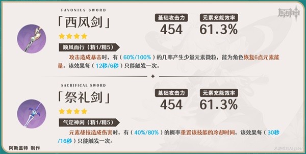 这两把武器主要作为优化技能循环使用,当圣遗物提供的充能效率在170%以上时,可考虑精通类武器。