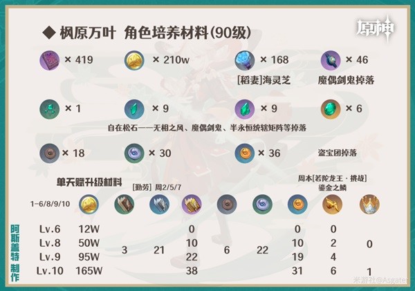 《原神》中枫原万叶是非常优秀的辅助角色,那么他该如何培养来发挥出自己的优势呢,下面请看“Asgater”带来的《原神》枫原万叶一图流培养指南,希望能够帮助大家。