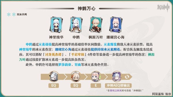 ①.申鹤的元素战技推荐点按施放;当珊瑚宫心海装备「讨龙英杰谭」时,其离场后需要直接切至神里绫华。