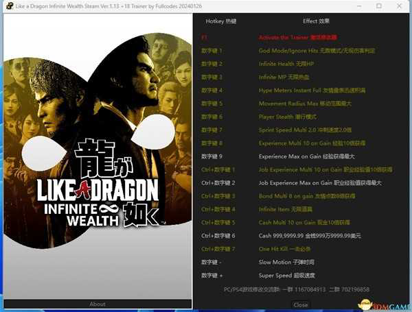 《如龙8》是一款冒险+角色扮演游戏,游戏中包含诸多玩法要素,通过使用修改器可以调整血量、经验获取、道具等参数,让游戏难度大大降低。下面请看由“Fullcodes”带来的《如龙8》修改器及使用方法说明,希望对大家有用。