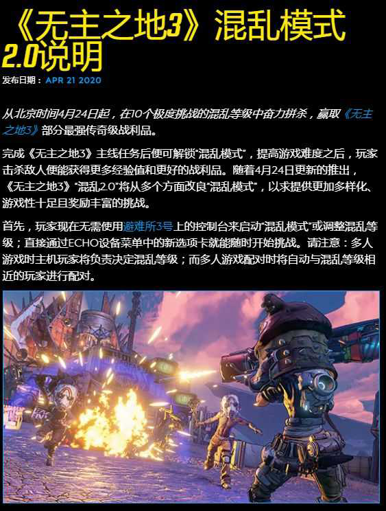 《无主之地3》马上要迎来一次大更新,更新内容中包括了混乱模式2.0版,那么混乱模式2.0更新了什么呢,下面请看由“猪场头子”带来的《无主之地3》混乱模式2.0更新一览,一起来看看吧。