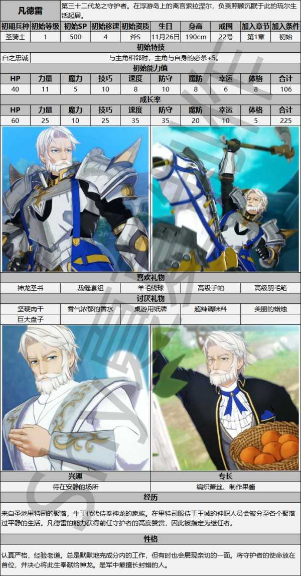 ·主角的成长率为HP:60/力:35/魔:20/技:45/速:50/防:40/魔防:20/幸:25/体:5。