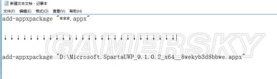 所以为了防止出错 ,我们打开记事本,先把这段复制上去:add-appxpackage "*.appx"(中间有个空格不要忽略)