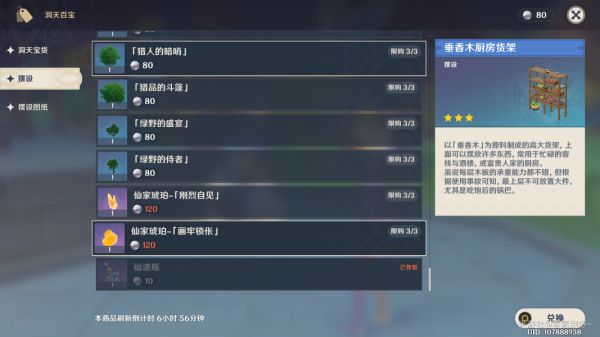 4、前期为了快速提升信任等级和洞天仙力,就要多做家具摆设,所以前期洞天宝钱优先兑换仙速瓶(作用是瞬间完成家具制作)