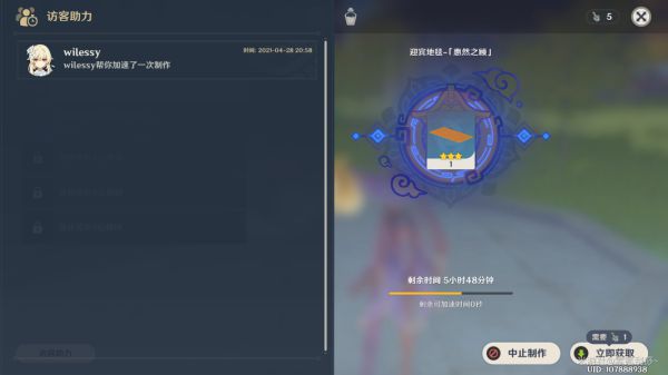 5、仙速瓶用完了,还可以叫好友进家园帮忙加速家具制作(提升时间有限制),进好友家园与壶灵对话即可有选项