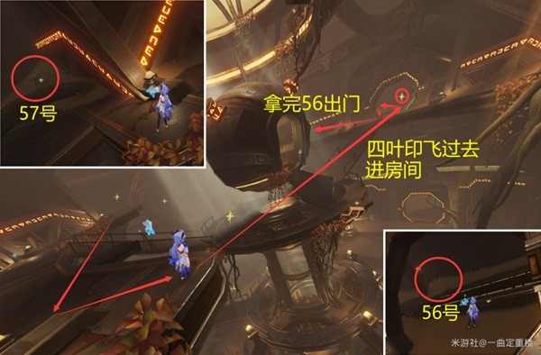 拿完56,回头出门右转,57号在角落